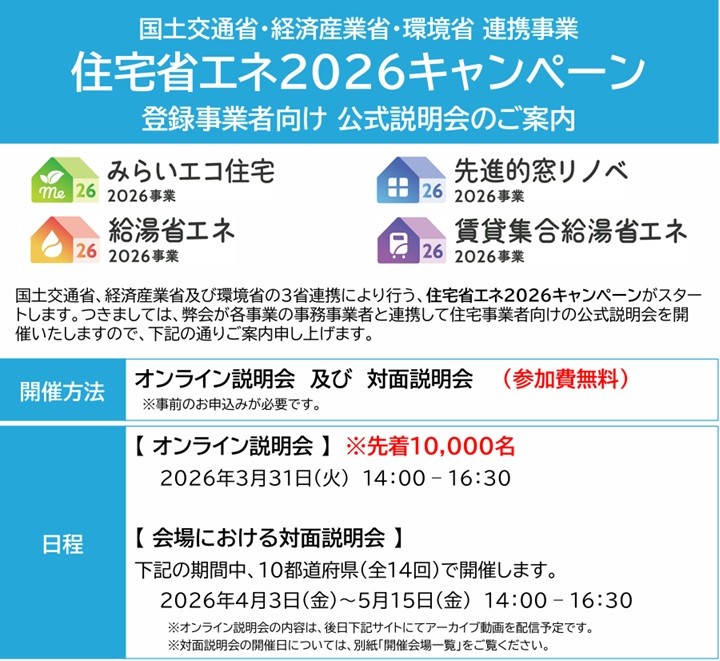 住宅省エネ2026キャンペーン説明会開催のお知らせ(リカコ)