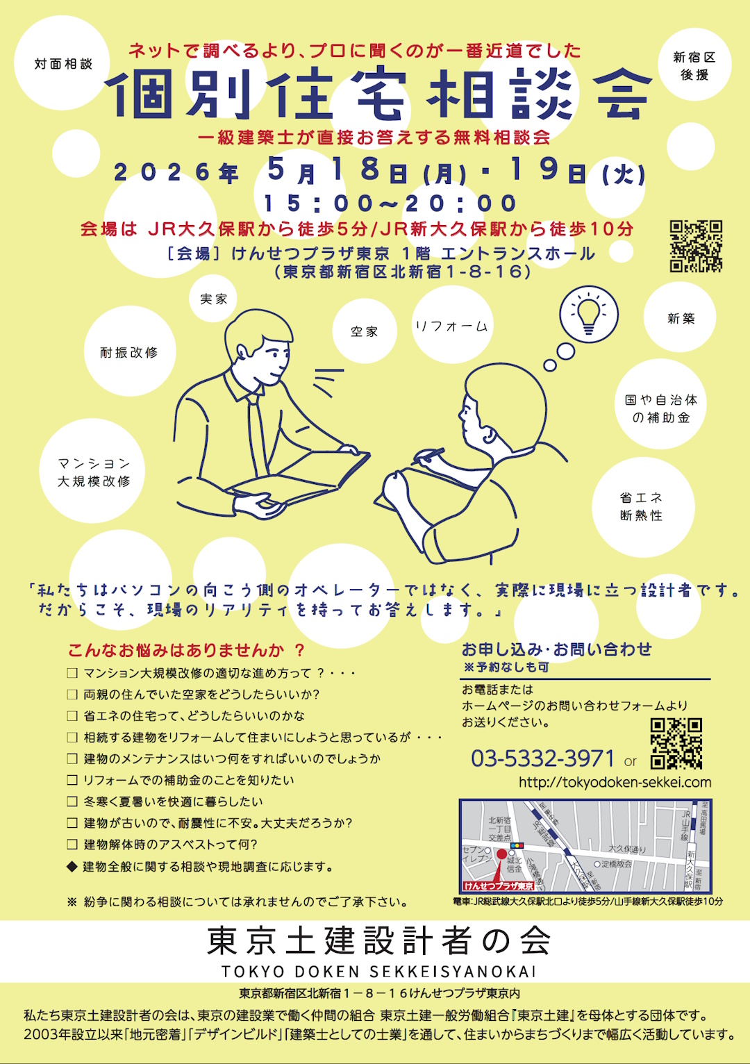 ネットで調べるよりプロに聞くのが一番近道でした!一級建築士が直接お応えする無料『個別住宅相談会』を5月18日、19日に開催(東京土建設計者の会)